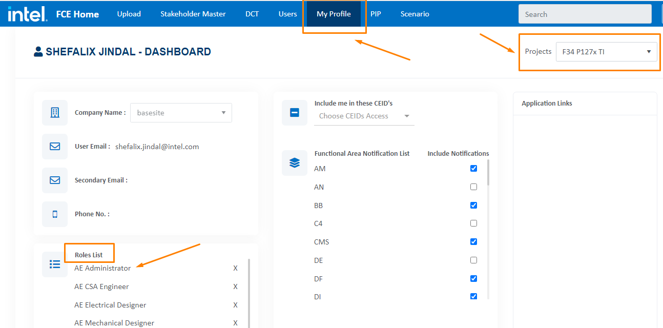 2. You have AE admin role on the project (Example: F34 P127x TI). You can verify your role from ‘My profile’ section on