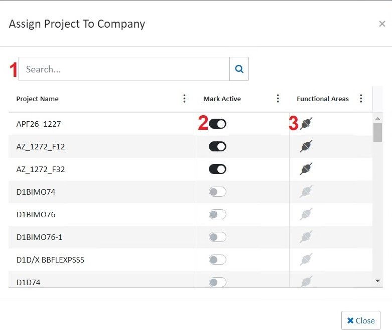 Similarly, toggling off the button will again make the company inactive and cannot be assigned to any project further.